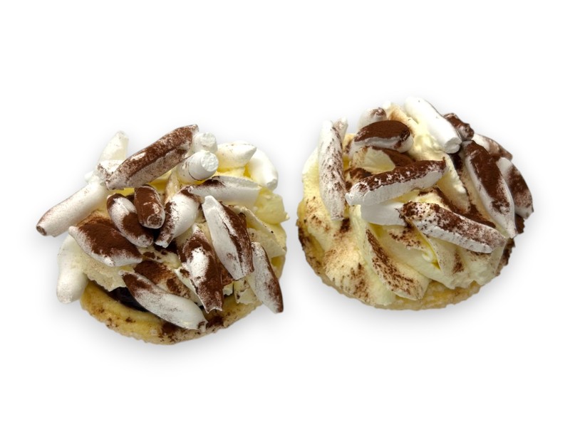 Korstschelpje gevuld met Zwitserse room, kersen, slagroom en schuim.