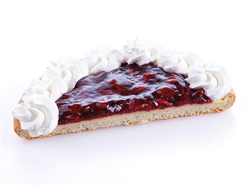 Traditionele vlaaibodem gevuld met gebonden kersen en afgewerkt met slagroom.